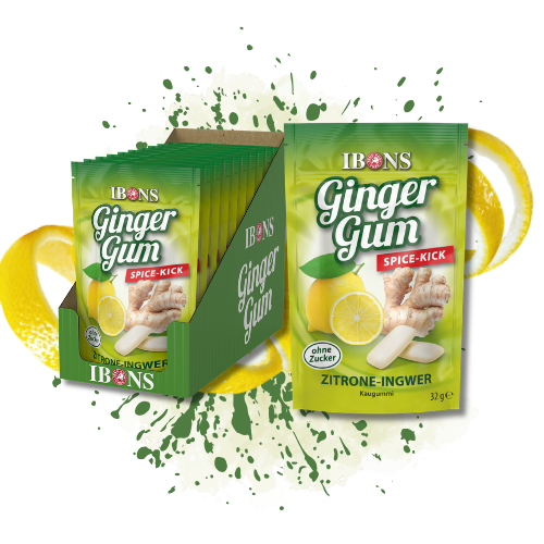 Verpasse deinem Leben den Spice Kick mit IBONS GingerGums ohne Zucker. Zitrone und Ingwer sorgen für fruchtige Frische und angenehme Schärfe.
