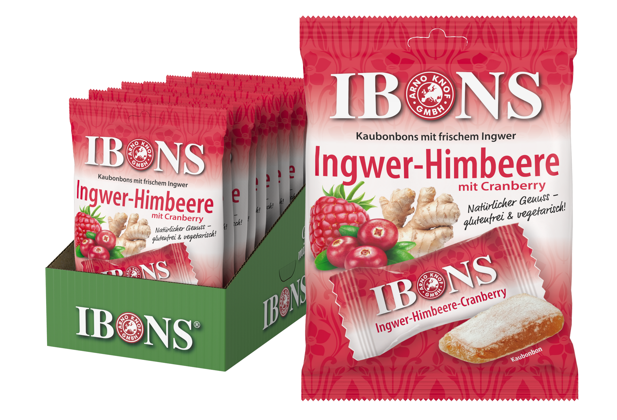 Fruchtig-ausgewogenes Kaubonbon mit süßer Himbeere, feiner Cranberry-Säure und wärmender Ingwerschärfe. Glutenfrei und vegan.