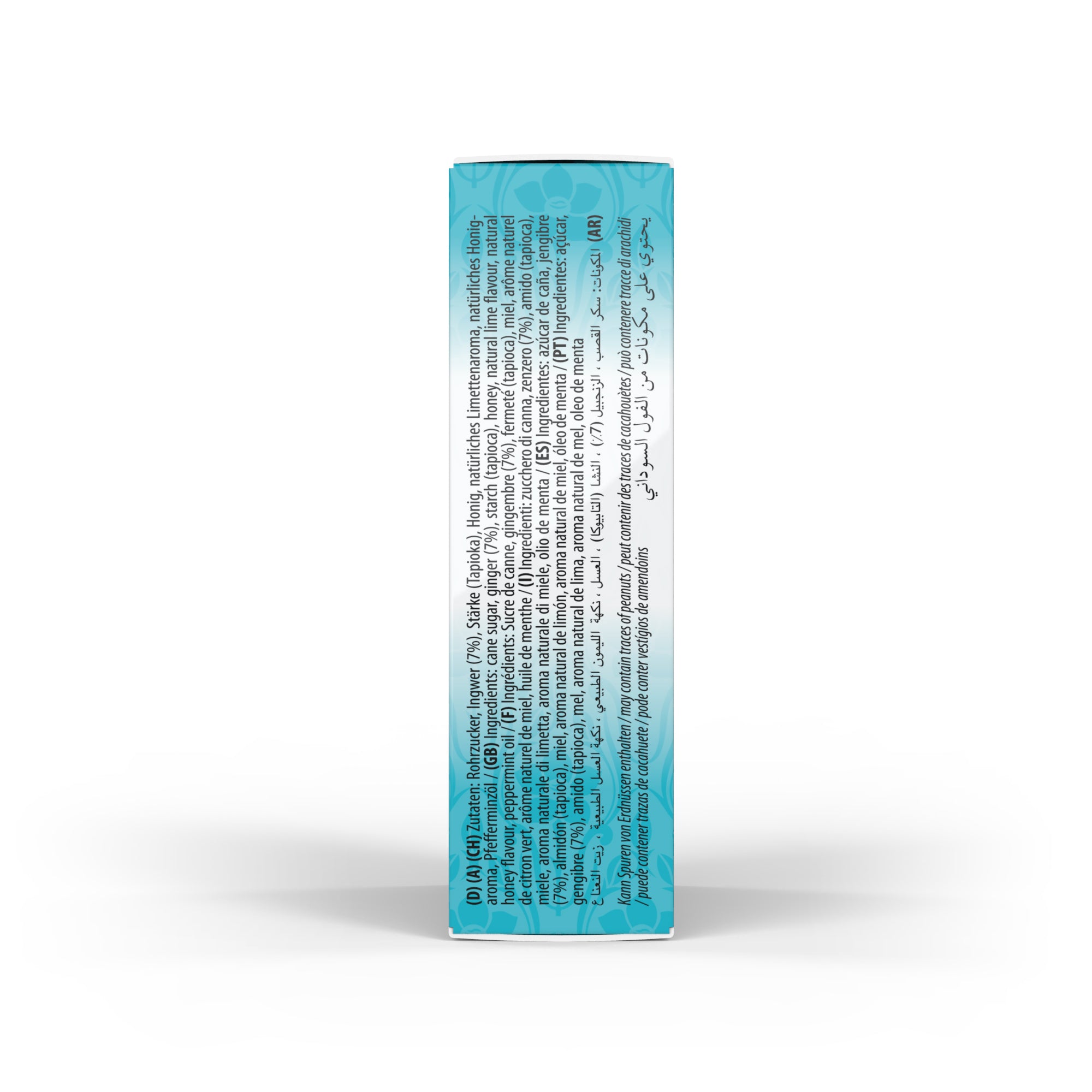 Ginger meets Summer! Eine unfassbar leckere Mischung aus fruchtiger Limette und frischer Minze, wunderbar eingerahmt mit einer leichten Honig-Note! Niemals war Ingwer und Sommer schöner zu genießen! Die Einfachheit der Rezeptur wird nur noch von der Natürlichkeit der Zutaten übertroffen - selten war ein Kaubonbon so lecker und natürlich!