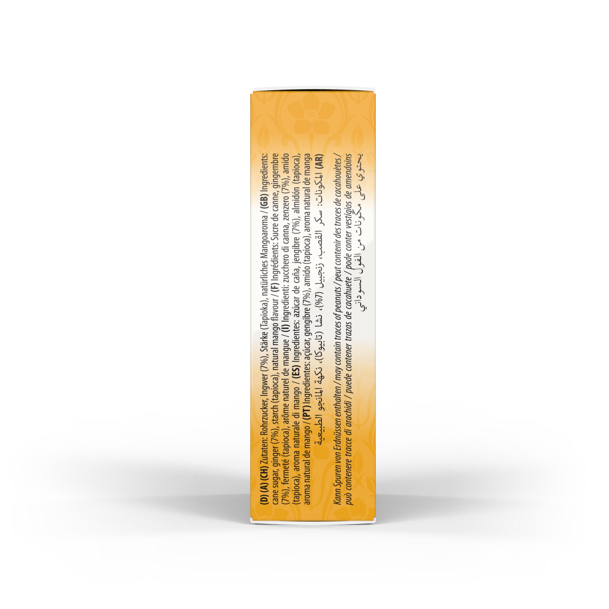 Unser IBONS Ingwer-Mango Kaubonbon ist weich, feurig und fruchtig. Der Geschmack von reifer und süßer Mango, aufgepeppt mit der Schärfe des Ingwers, sorgt für einen Hauch Exotik auf der Zunge und wenn man die Augen schließt für ein bisschen Urlaubsfeeling. Eine fruchtig scharfe Überraschung und ein absoluter Genuss für die Sinne. Das Besondere an unseren IBONS Bonbons ist, dass wir nur die besten Zutaten verwenden. Unsere Ingwer Kaubonbons werden nach einem alten Rezept mit frischem Ingwer und ohne Nahrungsmittelzusätze hergestellt.